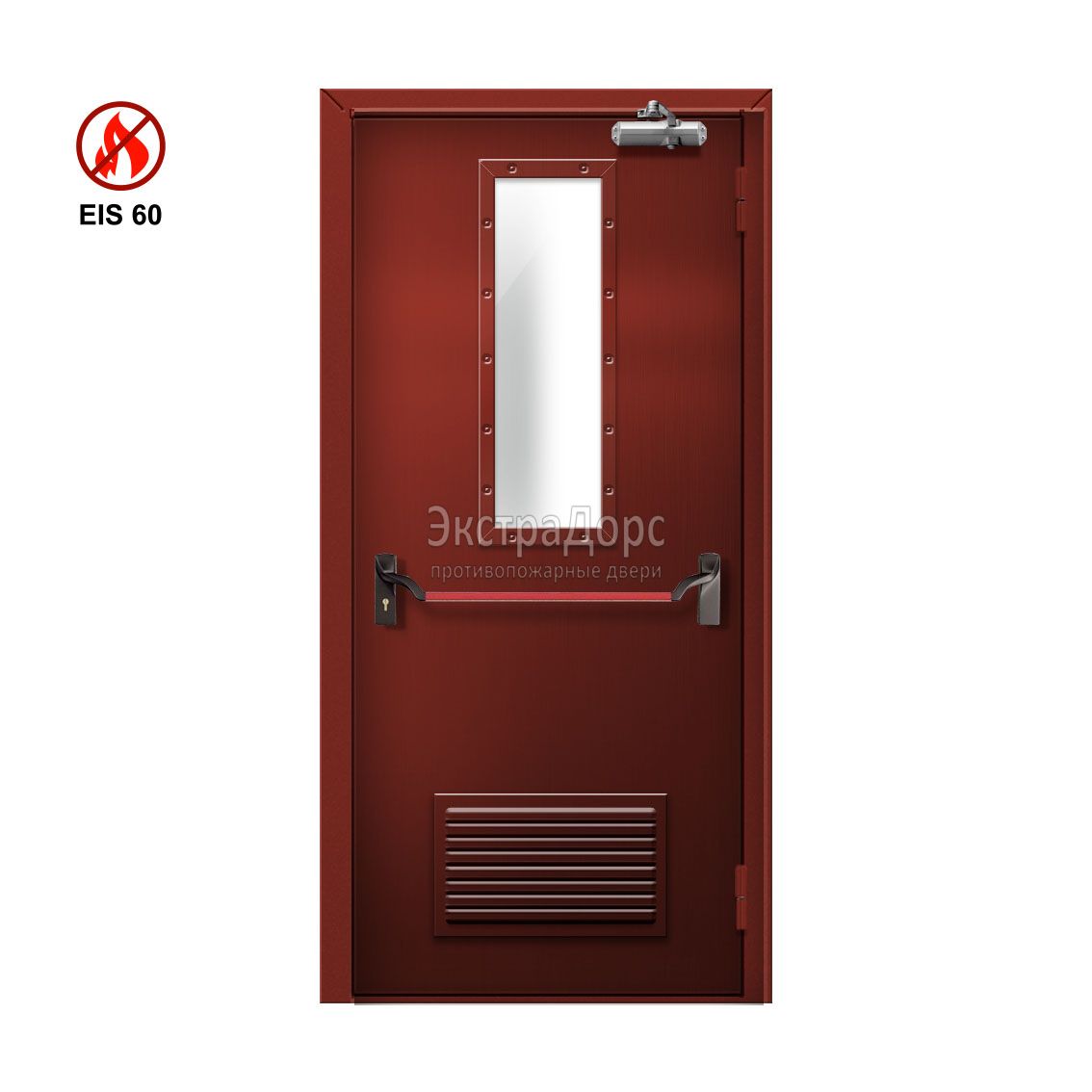 Противопожарная дверь EI 60 ДО-02-EI-60 полуторная остеклённая с антипаникой и решёткой