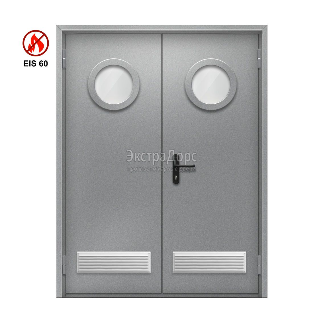 Двупольная огнеупорная дверь EI 60 ДО-02-EI-60 двупольная остеклённая с иллюминаторами