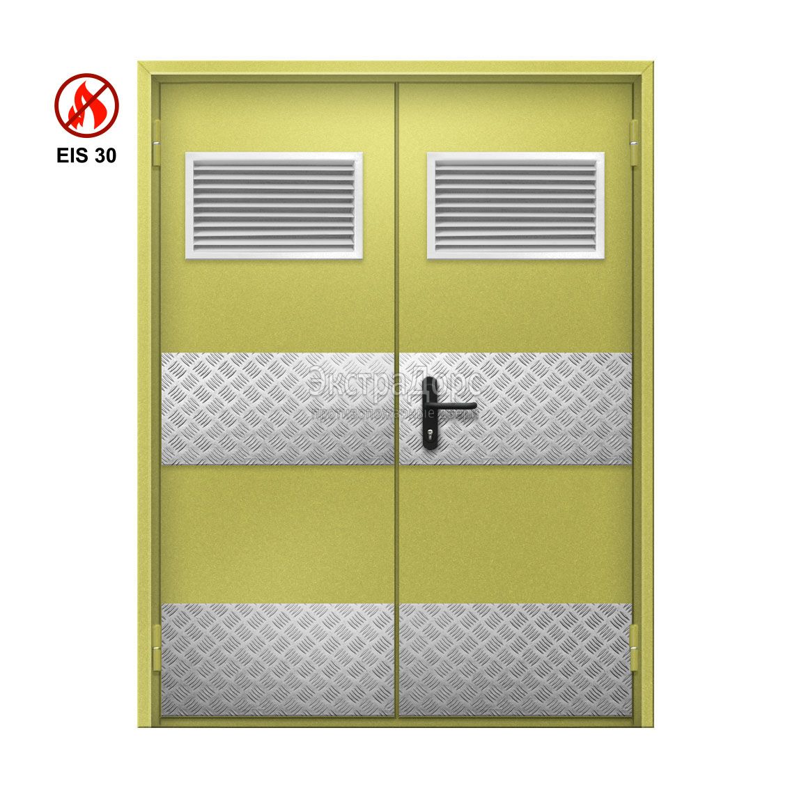 Двухстворчатая огнеупорная дверь EI 30 ДГ-02-EI30 ДП83 двупольная глухая с решеткой в Коломне