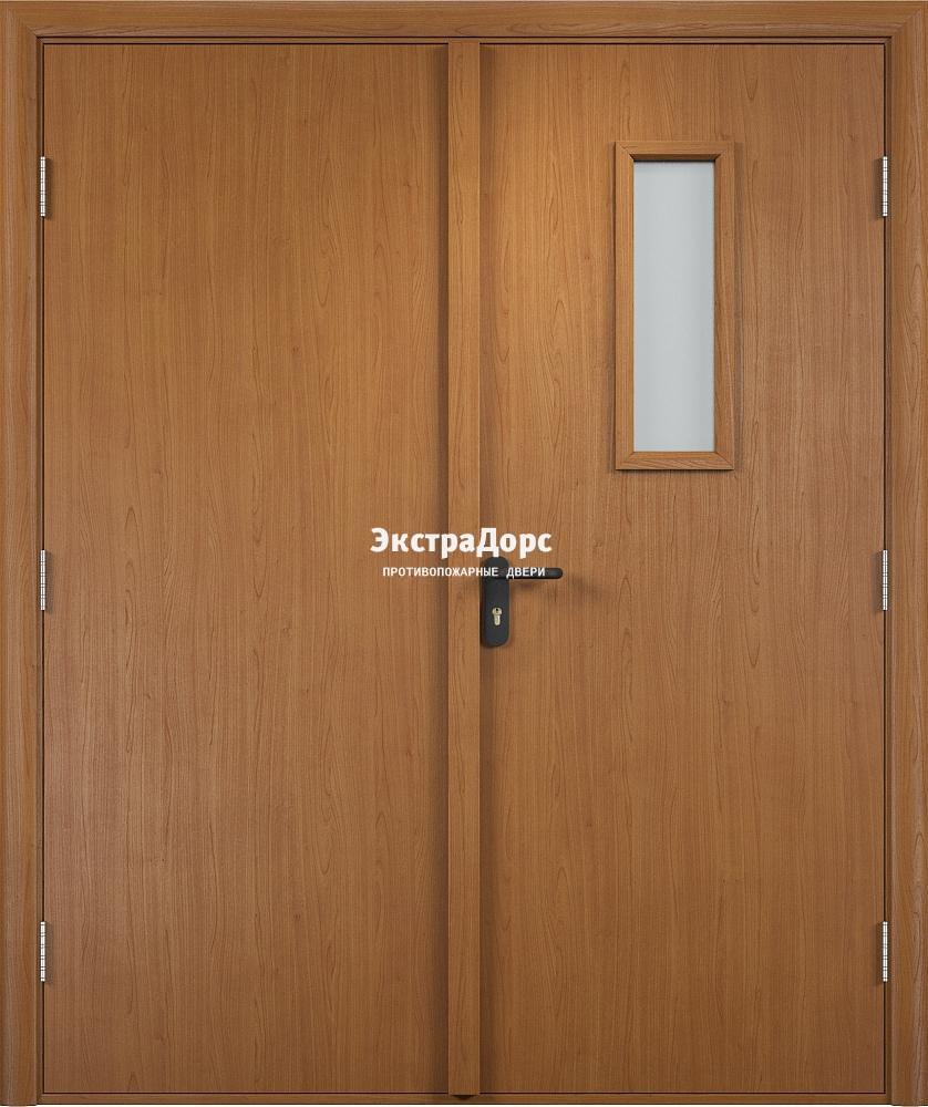 Двупольная противопожарная дверь ДМП-01-30 двухстворчатая со стеклом дуб в Коломне