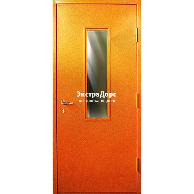 Противопожарная дверь анти-дым оранжевая со стеклом в Коломне