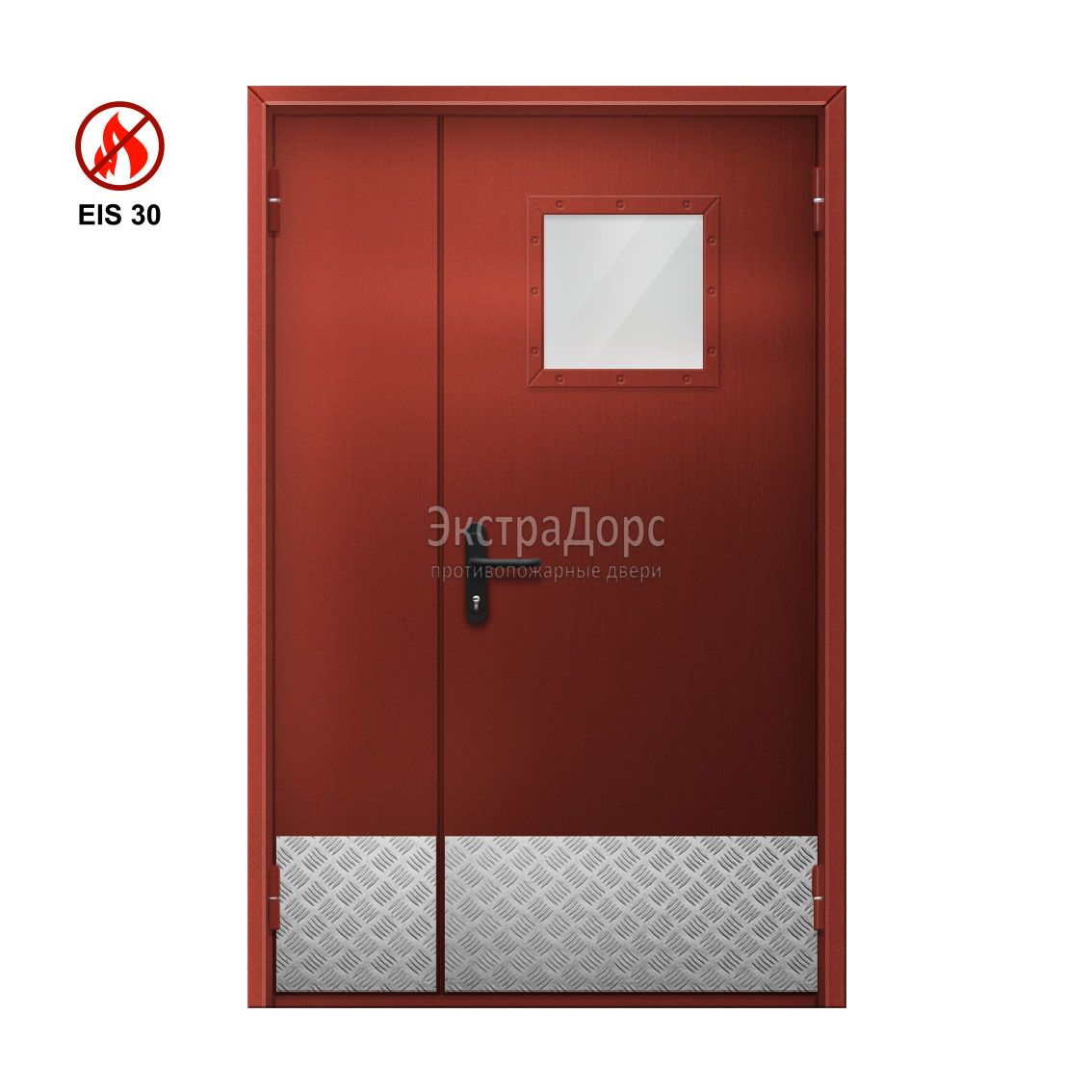 Двухстворчатая огнеупорная дверь EIS 30 ДОП-02-EIS30 ДП87 двупольная остекленная