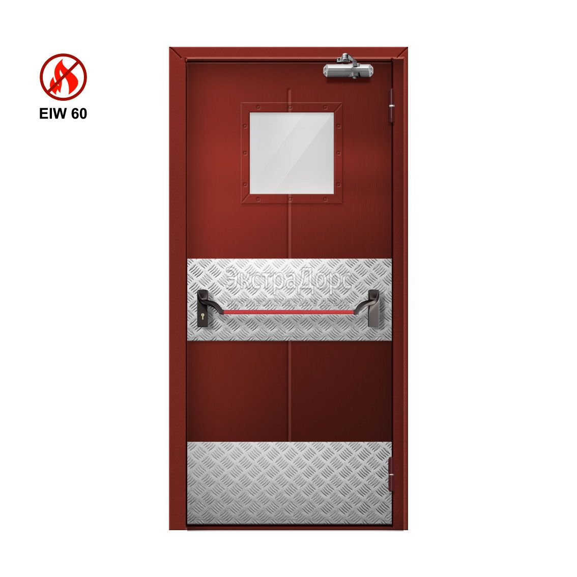 Дверь противопожарная металлическая однопольная EIW 60 ДМП-01-EIW-60 ДП58 остекленная с антипаникой в Коломне