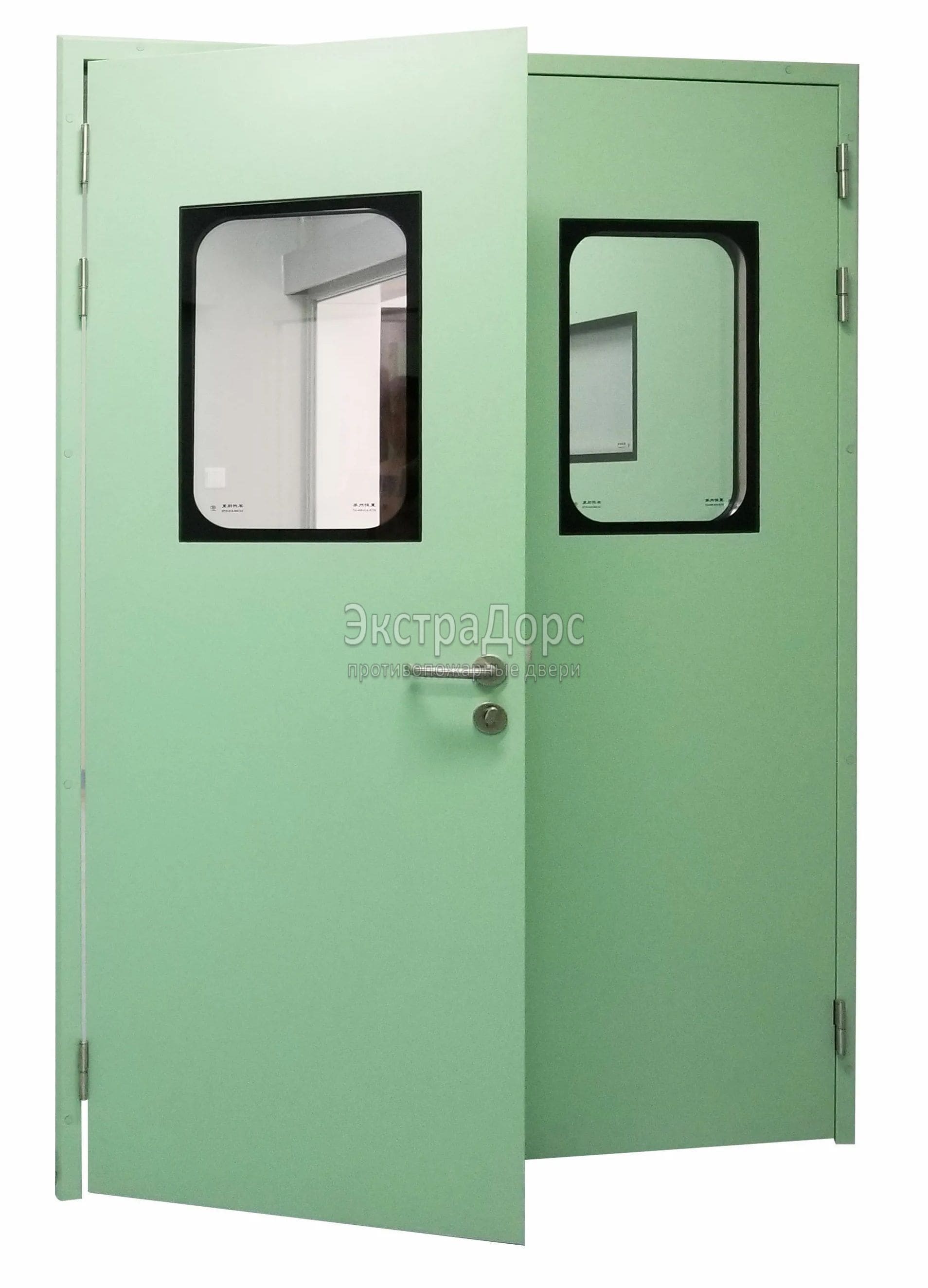 Двухстворчатая огнестойкая дверь EIW 60 зеленая со стеклом в Коломне