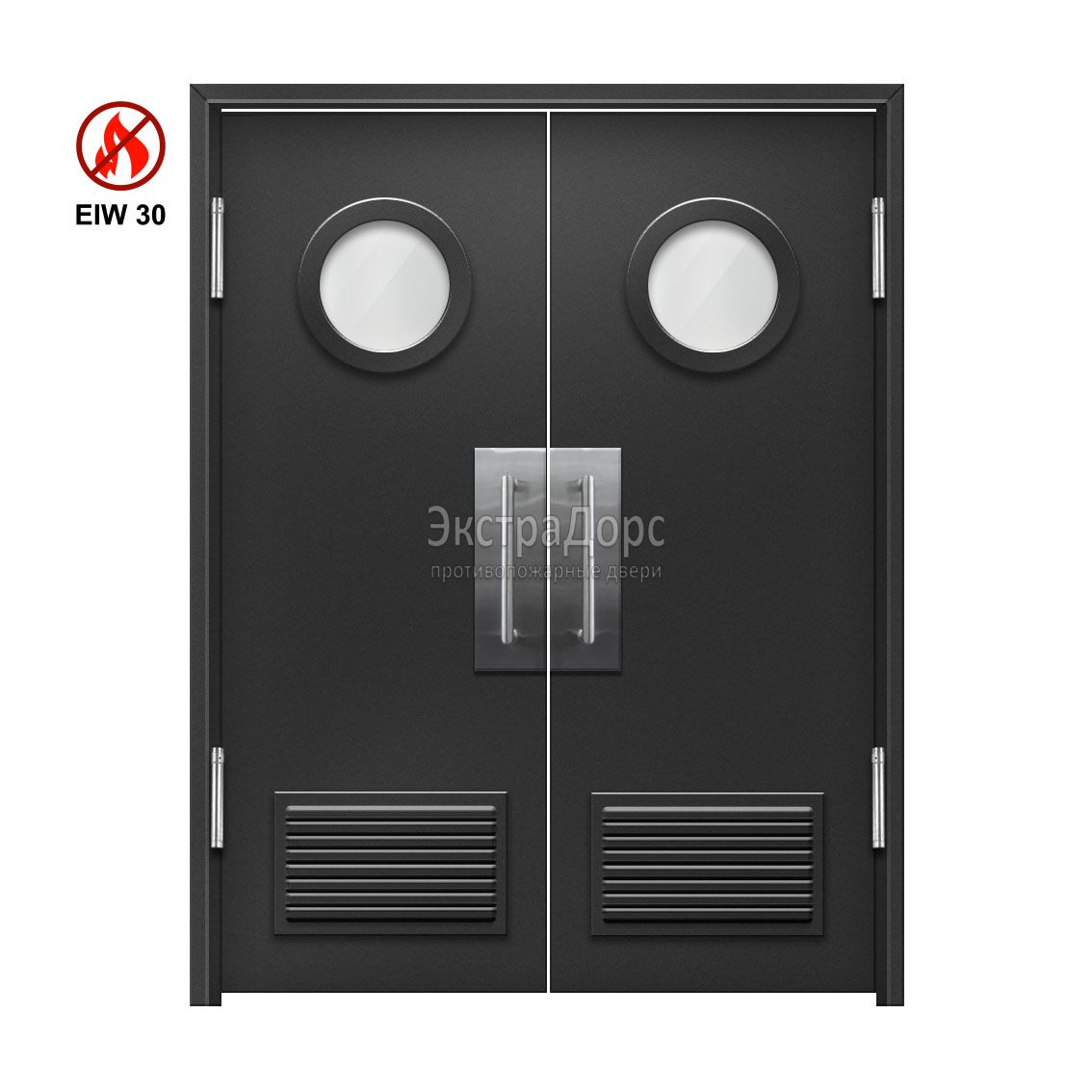 Двупольная огнеупорная утепленная маятниковая дверь с решетками остекленная EIW 30 ДПМ-02-EIW-30 ДП80 в Коломне