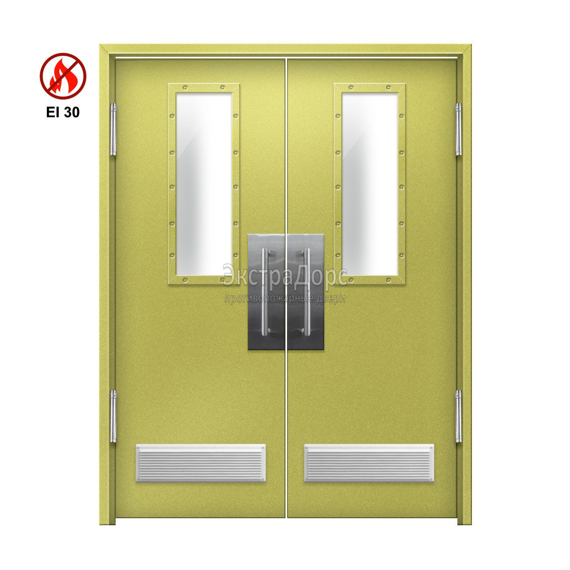 Маятниковая противопожарная дверь остекленная EI 30 ДО-02-EI30 с решеткой ДП37 в Коломне