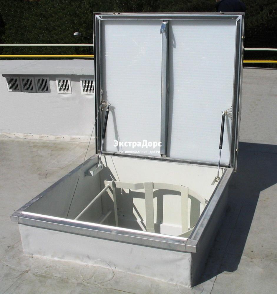 Черный противопожарный люк на кровлю с прозрачной крышкой