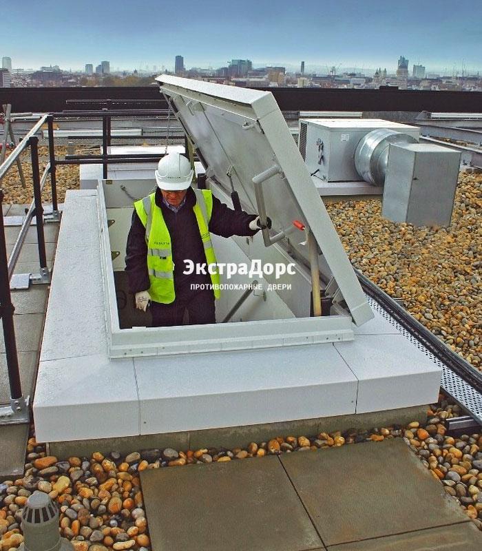 Черный противопожарный люк на кровлю с прозрачной крышкой