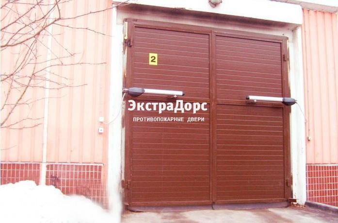 Двухсекционные противопожарные ворота серые распашные
