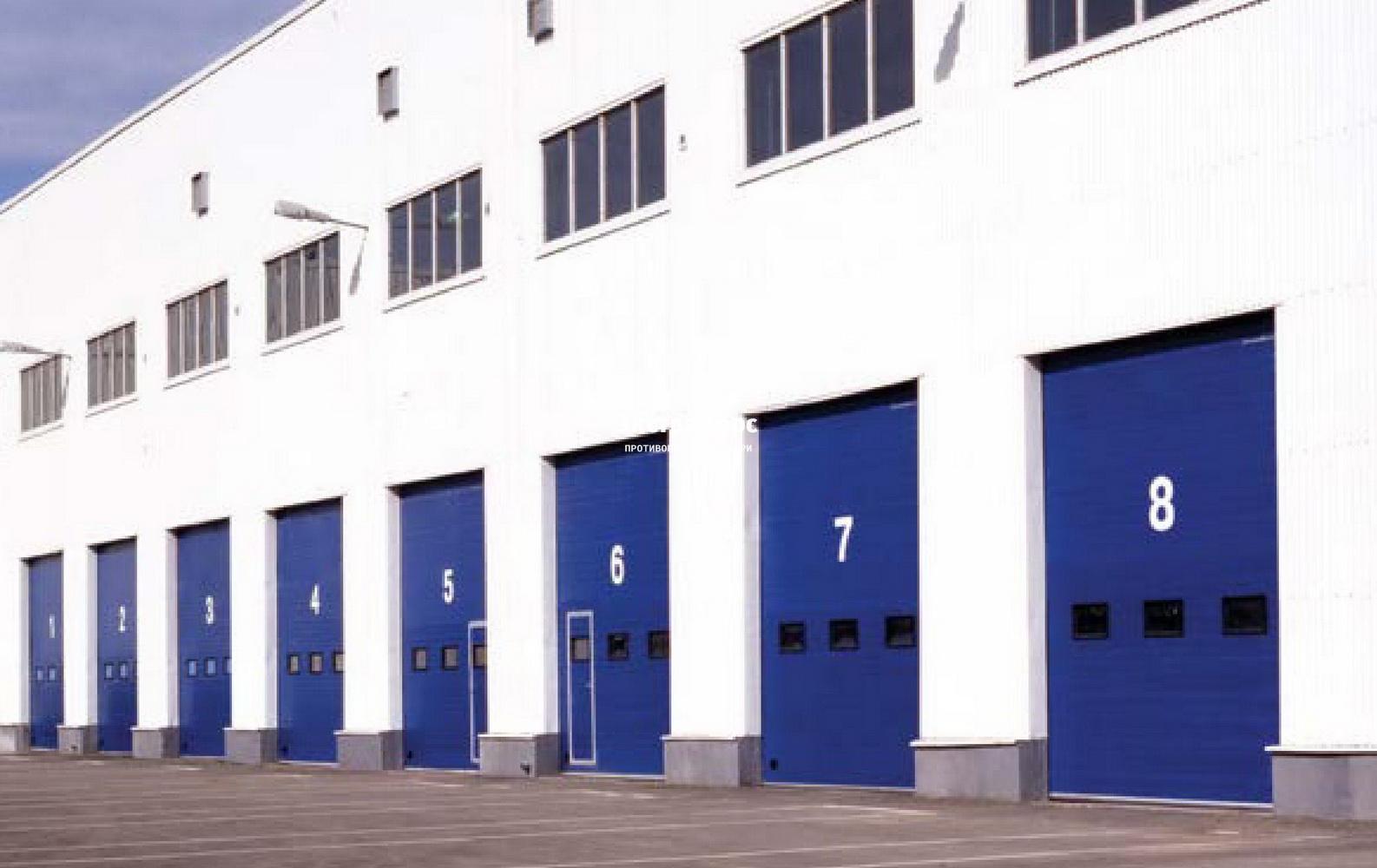 Синие огнеупорные промышленные ворота с окнами в Коломне