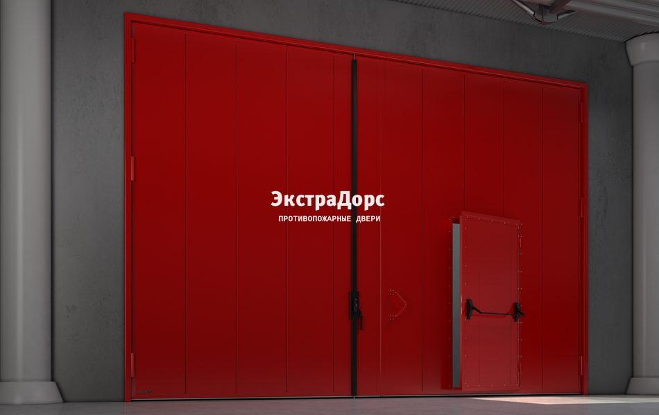 Красные распашные противопожарные ворота с калиткой в Коломне