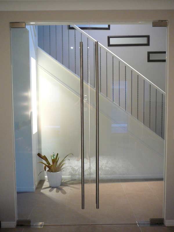 Противопожарная безрамная дверь со стеклом в частный дом в Коломне